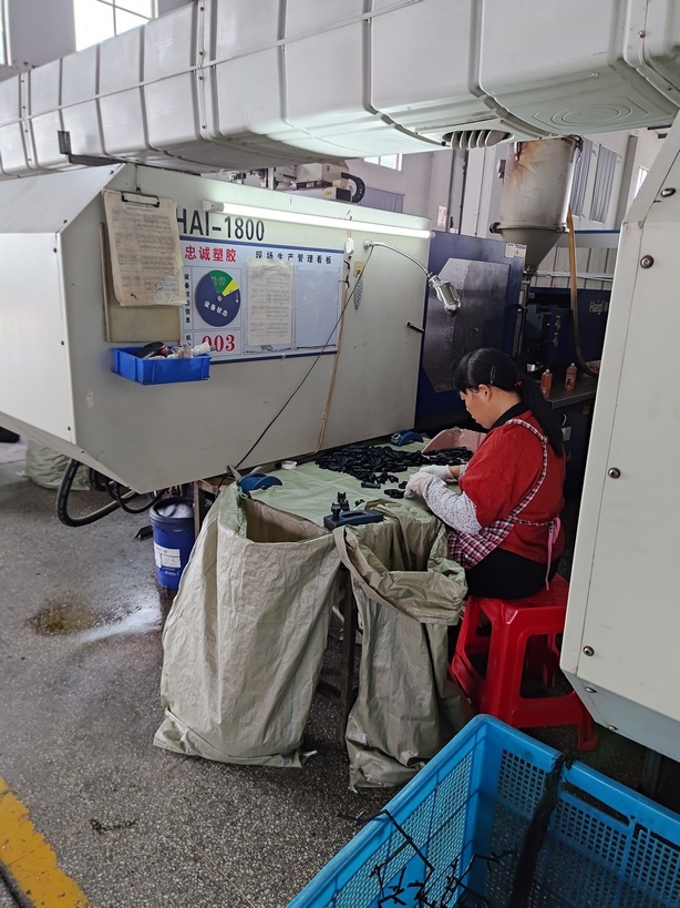 Как я сказал выше, пластиковые компоненты фабрика производит сама. Пресс-формы загружаются в станки, которые потом выдают готовую продукцию.