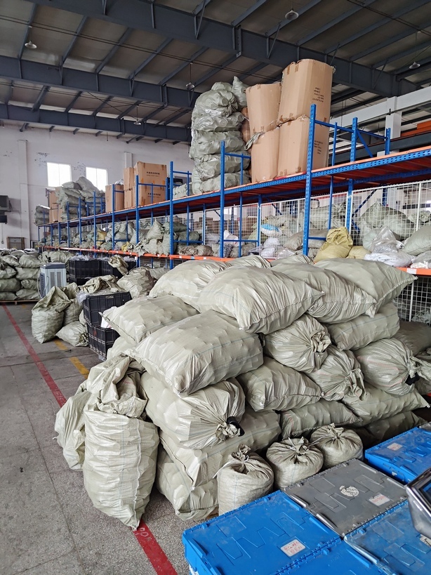 Ниже китайский склад готовых пластиковых компонентов. Вам кажется, что это хаос и всё навалено. Но нет. Это китайский порядок. Они знают, что где лежит, и в каких мешках нужные детали.